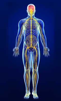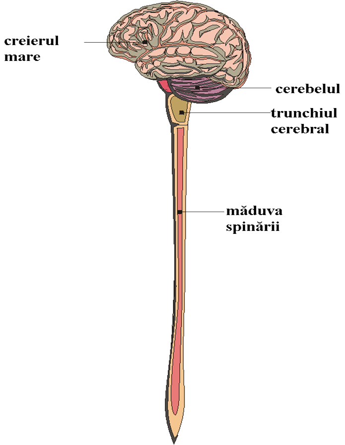 Reglarea nervoasă a funcțiilor corpului se bazeazã pe activitatea centrilor nervoși (din encefal sau din măduva spinării), care prelucrează infomațiile primite (de la receptori tactili, vizuali etc.) și apoi elaborează comenzi ce sunt transmise efectorilor (în principal mușchi). Din acest punct de vedere, fiecare centru nervos poate fi separat în două compartimente funcționale: Așadar, fiecare organ nervos are două funcții fundamentale: funcția senzitivă și funcția motorie. La nivelul emisferelor cerebrale mai apare și funcția psihică. Separarea funcțiilor sistemului nervos în funcții senzitive, motorii și psihice este artificialã și schematică. În realitate, nu există activitate senzitivă fără manifestări motorii, și viceversa, iar stările psihice rezultă din integrarea primelor două. Toată activitatea sistemului nervos se desfășoară într-o unitate, în diversitatea ei extraordinară. Sistemul nervos se împarte în două mari categorii: Neuronul reprezintă unitatea morfo-funcțională a sistemului nervos. Din punctul de vedere al formei și al dimensiunilor, neuronii sunt foarte diferiți. Aceștia nu se divid, funcțiile lor fiind susținute de nevroglii. La mamiferele superioare, numărul nevrogliilor depășește de 10 ori numărul neuronilor. Forma și dimensiunile corpului celular pot fi diferite, iar prelungirile, variabile ca număr. Se descriu mai multe tipuri de nevroglii: celula Schwann, astrocitul, oligodendroglia, microglia, celulele ependimare și celulele satelite. Nevrogliile sunt celule care se divid intens (sunt singurele elemente ale țesutului nervos care dau naștere tumorilor din SNC). Au rol de suport pentru neuroni, de protecție, trofic, rol fagocitar (microglia), în sinteza tecii de mielină și în sinteza de ARN și a altor substanțe pe care le cedează neuronului. |